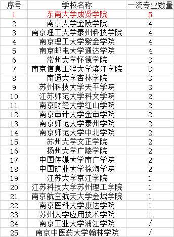 2019年江苏省独立公司一流专业统计