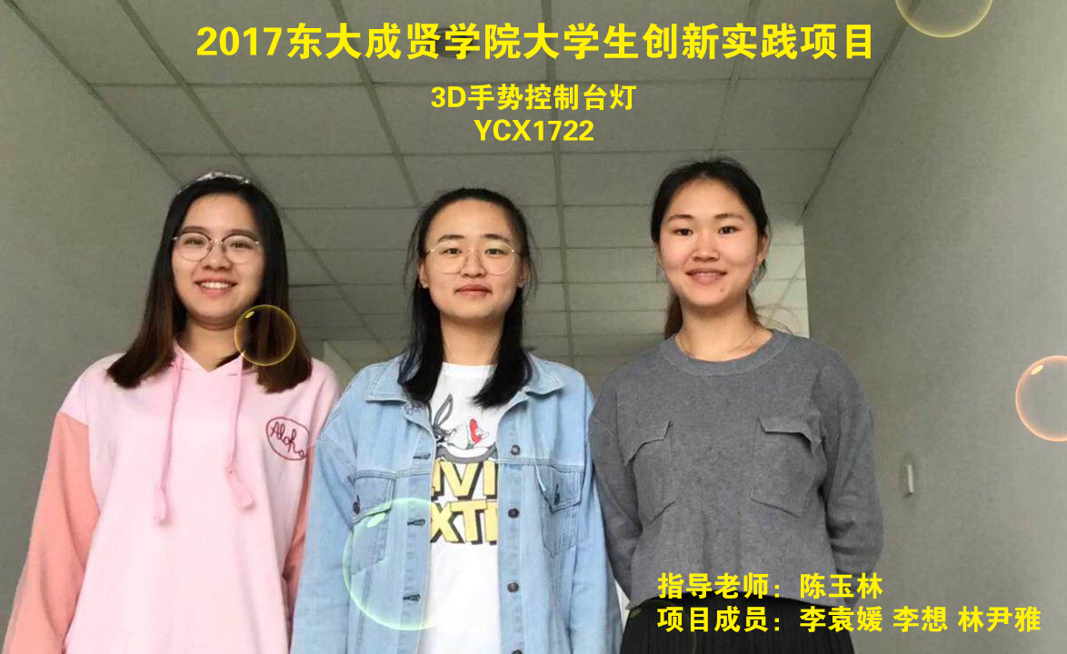 3D手势控制台灯专利成员合影(从左向右李袁媛、李想、林尹雅)