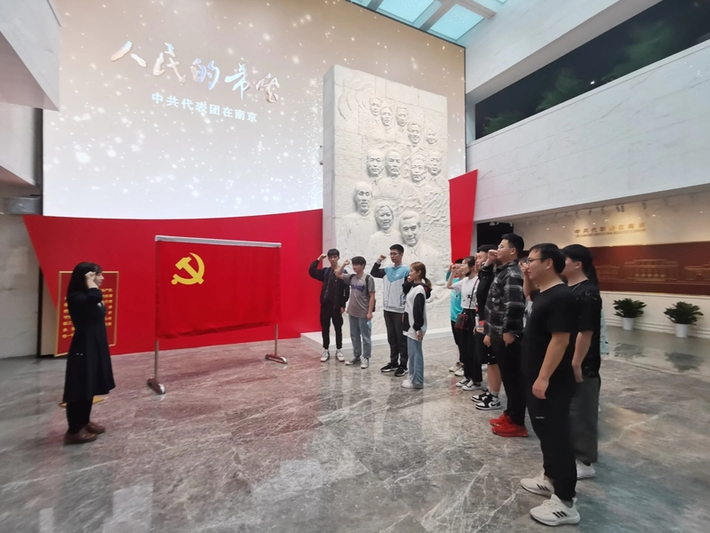 本次活动由betway西汉姆官网电子科学与技术党支部书记孙瑾微老师带队。党员们参观了中国共产党代表团梅园新村纪念馆,并举行了新党员入党宣誓仪式。在鲜红的党旗下,由员工党员任嘉慧同学领誓,7名新进党员进行了入党宣誓,现场的全体党员同志同时也重温了入党誓词。