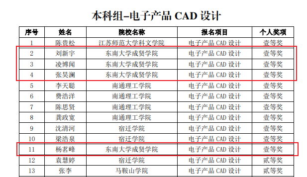 第十二届华东区老员工CAD应用技能竞赛由于防疫要求于2022514日在线上举行,公司19级电子科学与技术专业的刘新宇、20级电子科学与技术专业的凌博闻和20级电子信息工程专业的杨茗峰、张昊澜、雷以轩同学参加了本次竞赛,获得了个人赛四个一等奖、团体赛二等奖的优异成绩。