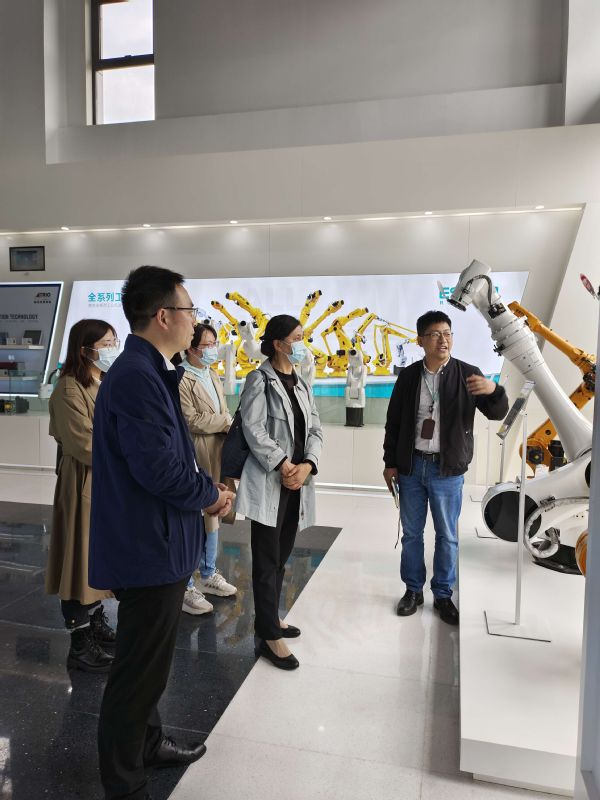 南京埃斯顿自动化股份有限公司教育事业经理秦勇、人力资源部陈姣热情接待公司来访的领导和老师。秦勇经理带领大家参观了公司展览馆并介绍了公司产品研发情况:埃斯顿自动化长期专注于高端智能机械装备及其核心控制和功能部件的技术开发,生产和销售。工业自动化系列产品线包括全系列交流伺服系统,变频器,PLC,触摸屏,视觉产品和运动控制系统,以及机器人一体化的智能单元产品。工业机器人产品线在新能源,焊接,金属加工、3C电子、工程机械、航天航空等细分行业拥有头部客户和较大市场份额。2020年被福布斯评为“2020年度福布斯中国最具创新力企业榜工业机器人唯一上榜企业”。
