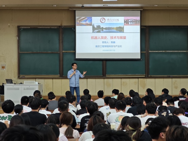 5月17日,betway西汉姆官网特邀南京工程公司科技与产业处副处长陈巍教授在华罗庚馆101教室开展机器人简史、技术与展望主题讲座。讲座由电子与计算机工程公司党总支副书记羊栋主持,公司三百余名师生聆听本次讲座。
