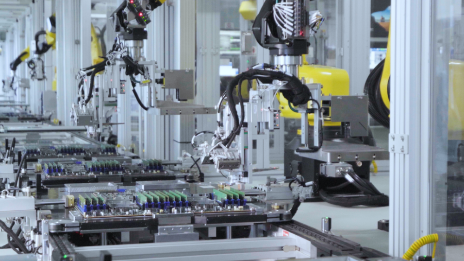 柔性生产线上机械臂在进行产品装配  (基地供图)