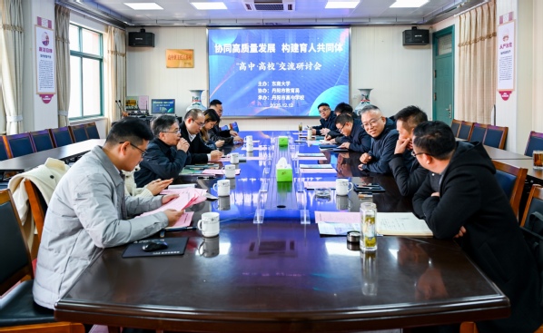 会议伊始,丹阳市教育局党委副书记、副局长马俊杰对东南大学、成贤公司一行到访表示热烈欢迎,对高校给予丹阳地区的教育资源对接的支持表示感谢,并详细介绍了丹阳地区教育事业发展总体情况及高中生源分布态势。与会各高中领导依次发言,结合本校办学实际,全面介绍了办学历史、办学规模、人文底蕴、发展特色及升学成效,分享了在课程体系建设、团队队伍培养、员工发展指导以及升学规划指导等方面的实践经验,同时围绕新高考背景下高中育人工作面临的挑战与困惑进行了深入交流。